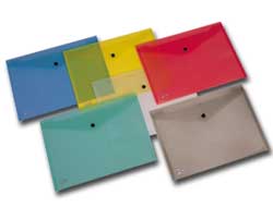 Cartellina in plastica a busta con tasca e chiusura a bottone.