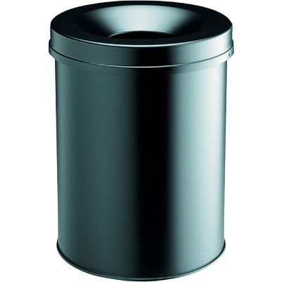 Cestino gettacarte ignifugo realizzato in metallo verniciato con polveri epossidiche. In caso di incendio la particolare conformazione del bordo fa ritornare il fumo nel cestino, quindi il rifornimento di ossigeno viene bloccato e le fiamme si spengono. Capacità di 15 litri.